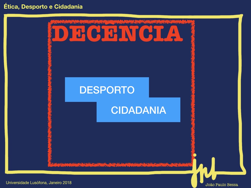 (Texto lido como conferencista convidado na conferência Ética, Desporto e Cidadania, realizada na Universidade Lusófona em 26 de Janeiro de 2018 que, por erro involuntário, só foi possível colocá-lo agora. Este texto foi acompanhado com projecção de slides, quatro dos quais aqui se reproduzem.)